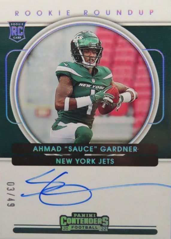 Sauce Gardner 2022 Contenders #RRA-ASG Rookie Roundup Autographs (/49) RAW Price Guide