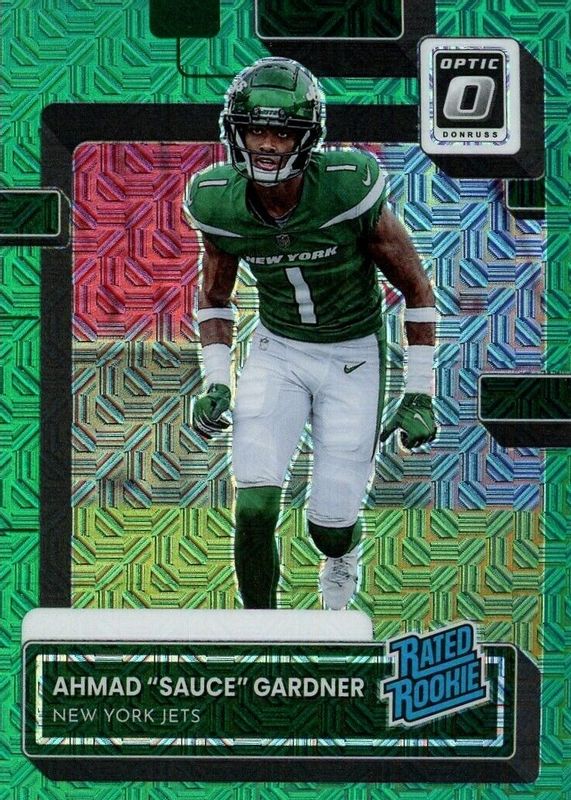 Ahmad “Sauce” Gardner 2022 Donruss- Optic Rated Rookies Preview Green Mojo P-328