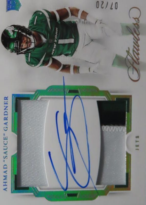 Sauce Gardner 2022 Flawless #RDP-AG Rookie Dual Patch Auto - Silver /20 RAW Price Guide