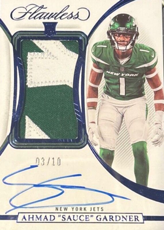 🔥 2022 Flawless Football Rookie Patch Auto Ahmad "Sauce" Gardner /10 Sapphire🔥