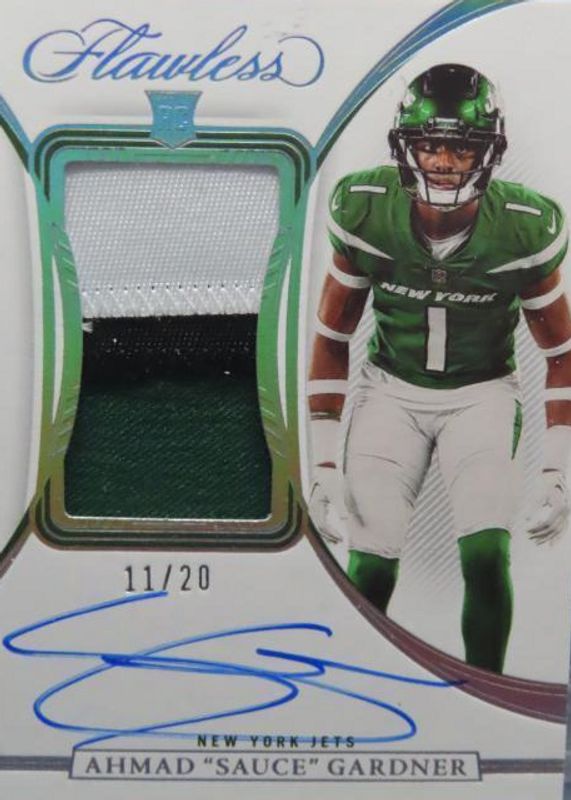 Sauce Gardner 2022 Flawless #RPA-AG Rookie Patch Auto - Silver /20 RAW Price Guide