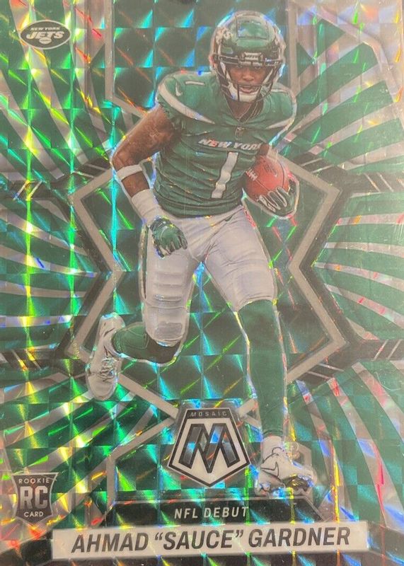 Sauce Gardner 2022 Mosaic #289 NFL Debut - Green Swirl /11 Rookie RAW Price Guide