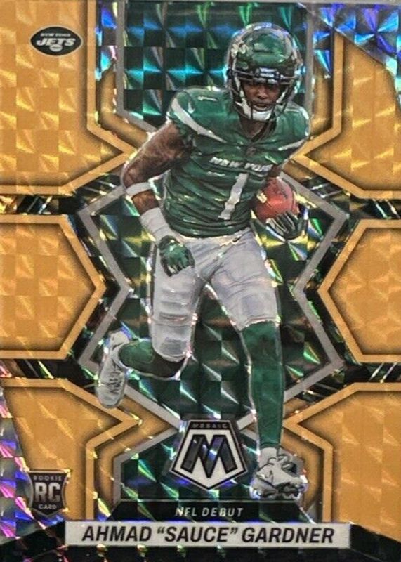 Sauce Gardner 2022 Mosaic #289 NFL Debut - Orange Fluorescent /25 Rookie RAW Price Guide