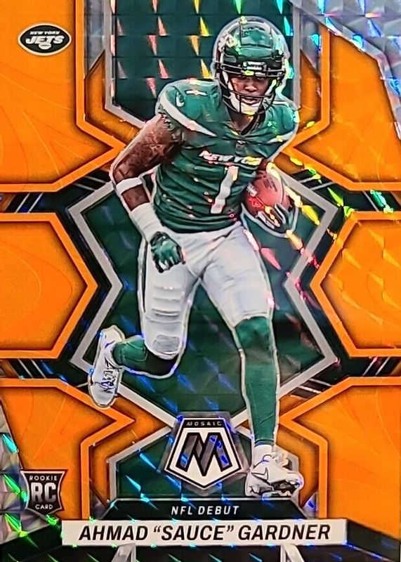 2022 Panini Mosaic Ahmad “Sauce” Gardner rookie card NFL Debut Orange Reactive