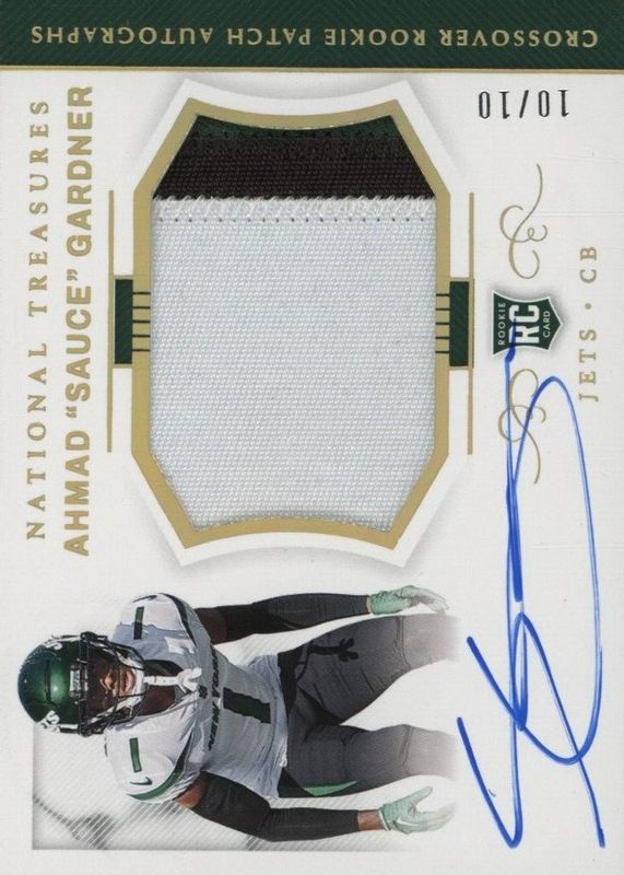 Sauce Gardner 2022 National Treasures #CRPA-AG Crossover Rookie Patch Autographs - Holo Gold /10 RAW Price Guide