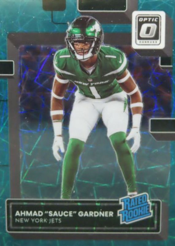 2022 Donruss Optic Ahmad Sauce Gardner Teal Velocity Prizm Rated Rookie RC #228