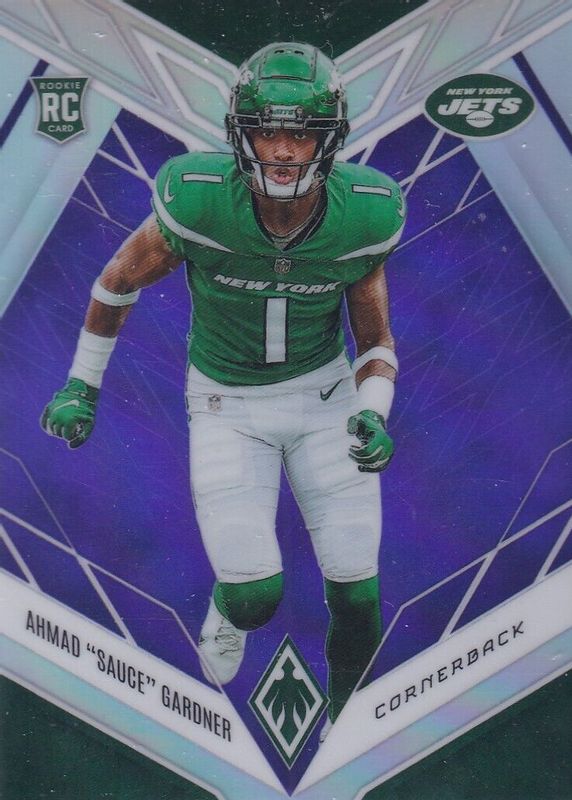 2022 Panini Phoenix Rookie Purple Ahmad Sauce Gardner #128 RC /125 SP Jets