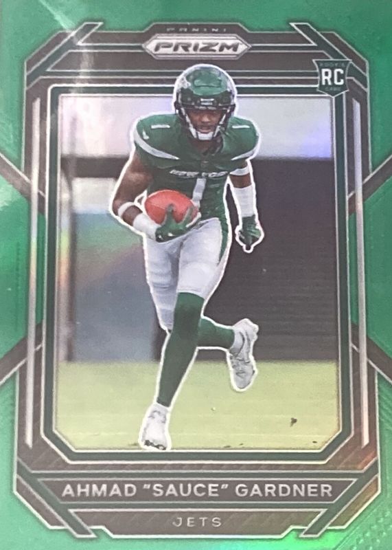 2022 Panini Prizm Football Ahmad Sauce Gardner GREEN Prizm RC #341 New York Jets