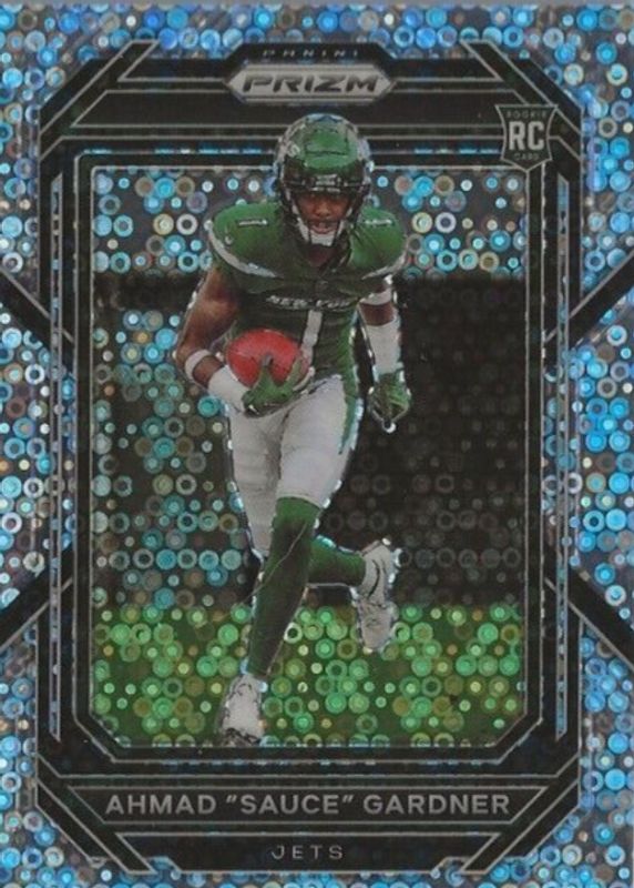 2022 Panini Prizm Ahmad Sauce Gardner SILVER Disco Prizm RC #341 Jets Rookie!