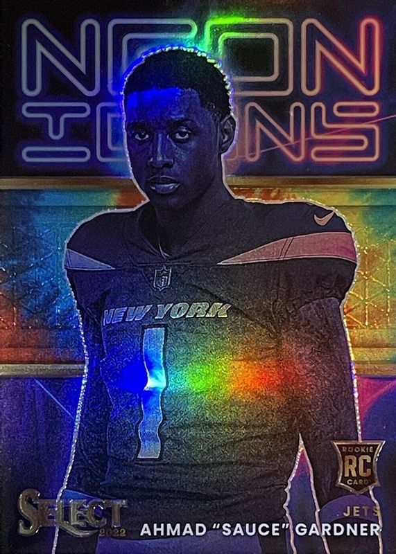 2022 Panini Select Ahmad "Sauce" Gardner RC Neon Icons Tie-Dye /25 Rookie Card