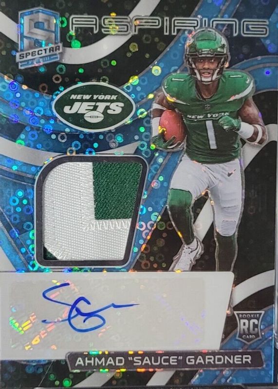 Sauce Gardner 2022 Spectra #APA-ASG Aspiring Patch Autographs - Neon Blue /50 Rookie RAW Price Guide