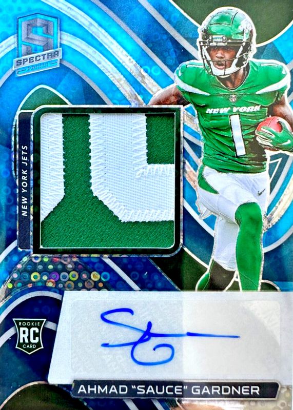 Sauce Gardner 2022 Spectra #203 Rookie Patch Auto - Neon Blue /60 RAW Price Guide