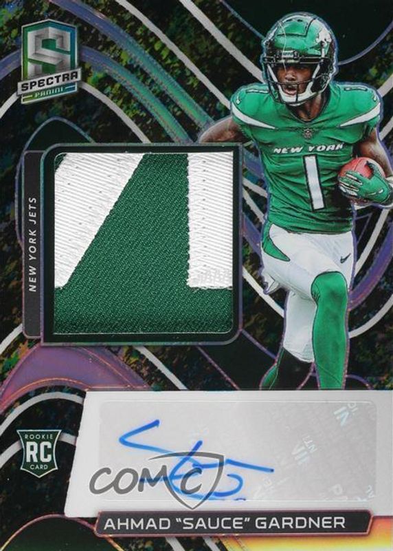 Sauce Gardner 2022 Spectra #203 Rookie Patch Auto - Neon Splatter /8 RAW Price Guide