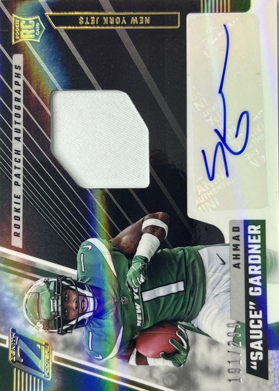 Ahmad Sauce Gardner 2022 Panini Zenith Rookie Patch Auto /299 Jets RC SP RPA