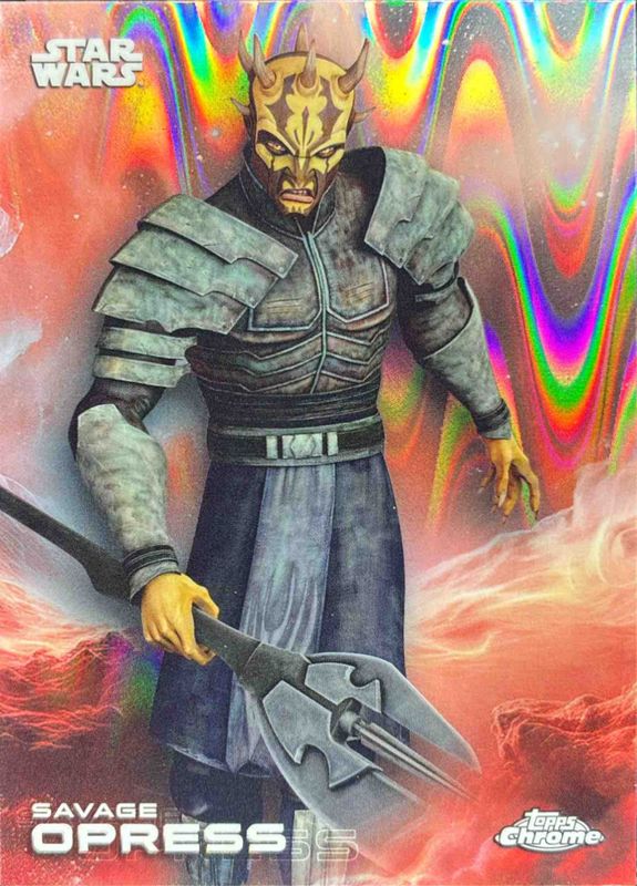 The Savage Opress 2025 Topps Chrome Star Wars #162 Wave Refractor card is 1 of 31 Savage Opress' card variations in the 2025 Topps Chrome Star Wars set being tracked by Sports Card Investor, including Base, Black & White Shimmer Refractor, Blue Pulsar Refractor, Prism Refractor, and Purple Pulsar Refractor.