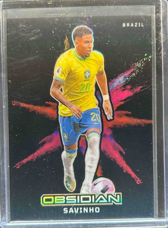 The Savinho 2024 Obsidian #11 Color Blast - Black card is 1 of 26 Savinho's card variations in the 2024 Obsidian set being tracked by Sports Card Investor, including Base /145, Electric Etch Red Pulsar /44, Electric Etch Orange /40, Electric Etch Purple Flood /30, and Electric Etch Imperial Jade /26.