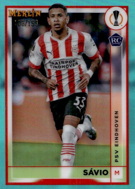 2022 Topps Merlin Chrome UEFA Savio Aqua Refractor RC #/199 #109