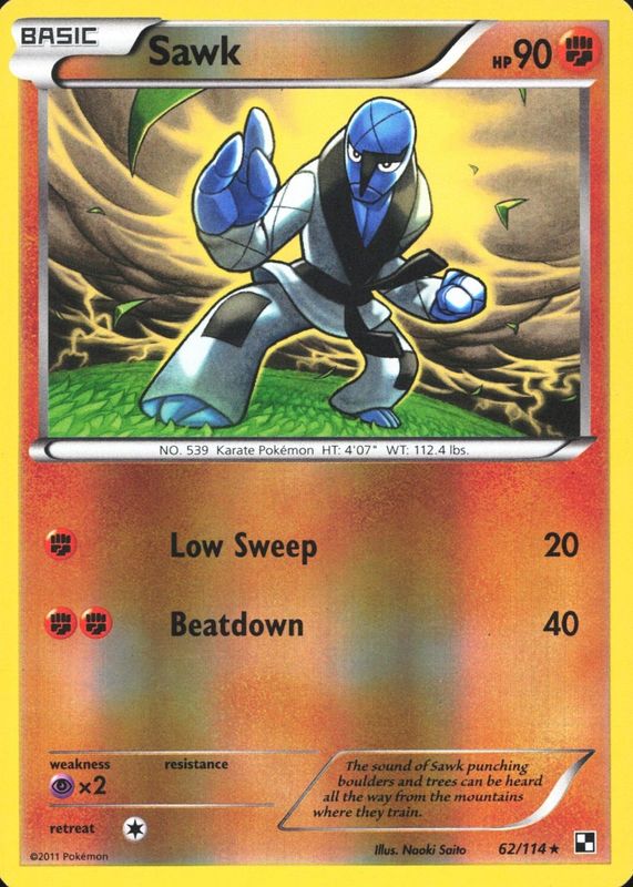 Sawk 2011 Black & White #062/114 Reverse Holo RAW TCG (LIGHTLY PLAYED) Price Guide