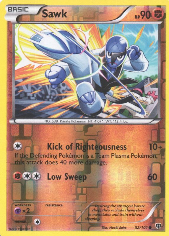 Pokemon 2013 Near Mint NM Sawk 52/101 Plasma Blast REVERSE Holo