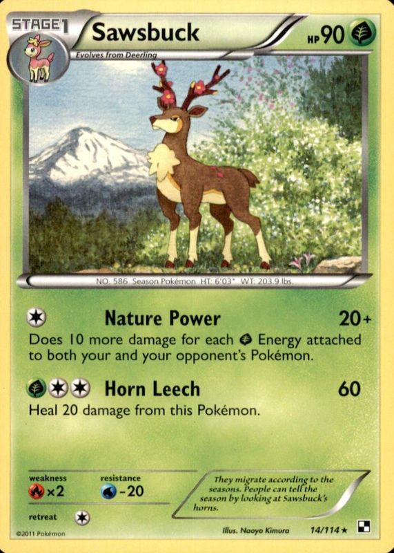 Sawsbuck 2011 Black & White #014/114 Base RAW TCG (LIGHTLY PLAYED) Price Guide