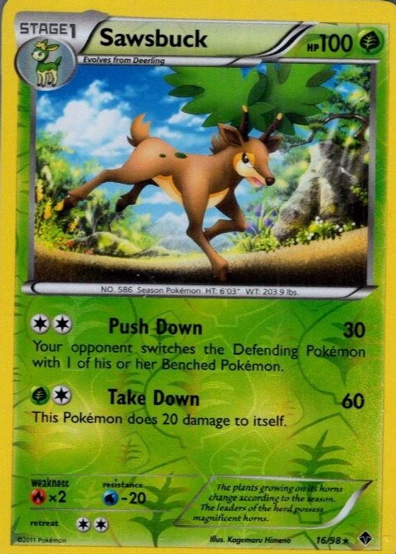 Sawsbuck 2011 Black & White: Emerging Powers #16/98 Reverse Holo RAW TCG (NEAR MINT) Price Guide