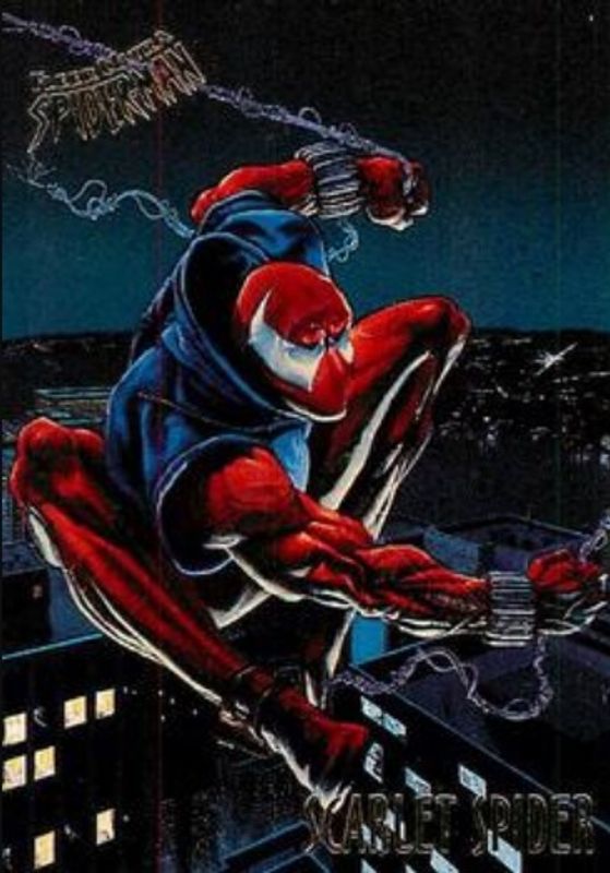 The Scarlet Spider 1995 Fleer Ultra Spider-Man #48 Base card is 1 of 3 Scarlet Spider's card variations in the 1995 Fleer Ultra Spider-Man set being tracked by Sports Card Investor, including Gold Foil Signatures Series, and HoloBlast.