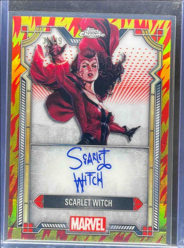 Scarlet Witch 2024 Topps Chrome #MI-4 Marvel Character Autographs - Human Torch Refractor /39 RAW Price Guide