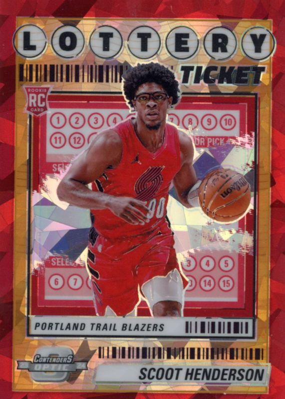 Scoot Henderson 2023-24 Contenders Optic Lottery Ticket Red Ice Prizm RC /175 (1