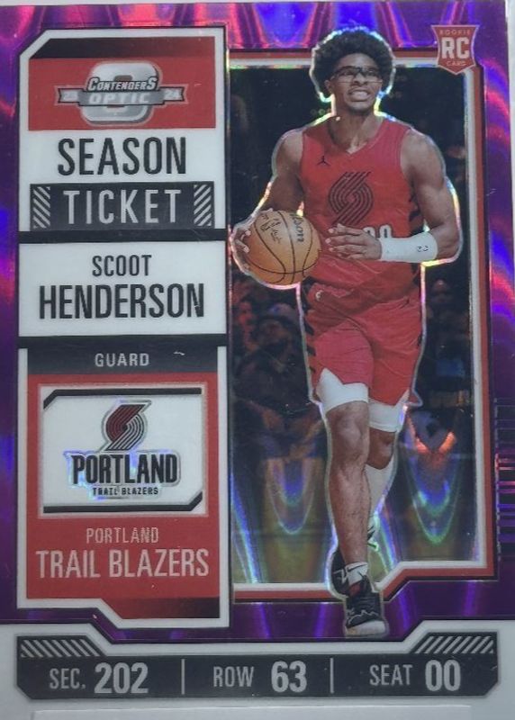 Auctions Ending Soon for Scoot Henderson 2023 Contenders Optic #46 Season Ticket - Purple FOTL /18 Rookie RAW