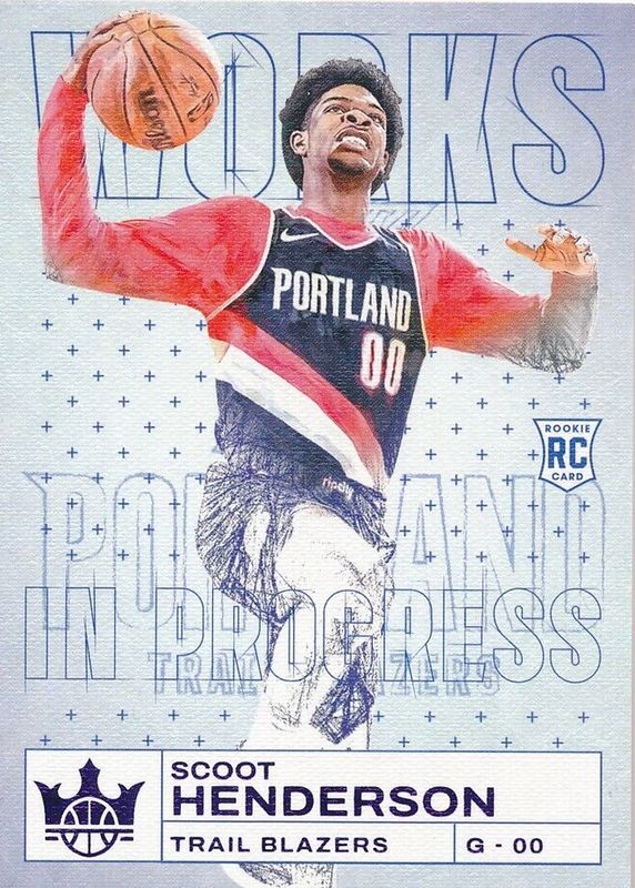 The Scoot Henderson 2023 Court Kings #21 Works in Progress - Violet /49 Rookie card in Raw condition has not changed in price in the last 30 days and was last sold for $11.08 .