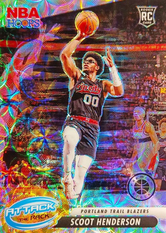 The Scoot Henderson 2023 Hoops Premium Stock #6 Attack the Rack - Premium Rookie card in Raw condition has not changed in price in the last 30 days and was last sold for $1.25 .