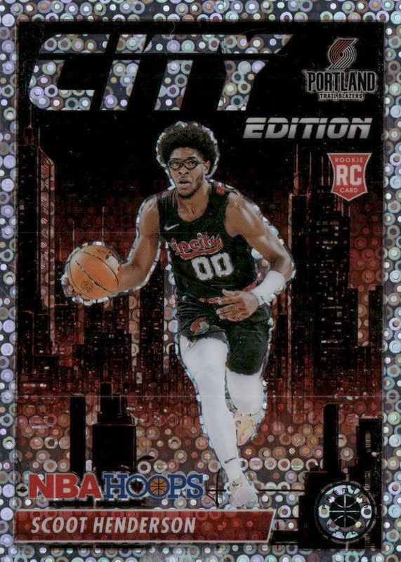 2023-24 Hoops Premium Stock #5 DISCO City Edition Scoot Henderson Rookie RC!