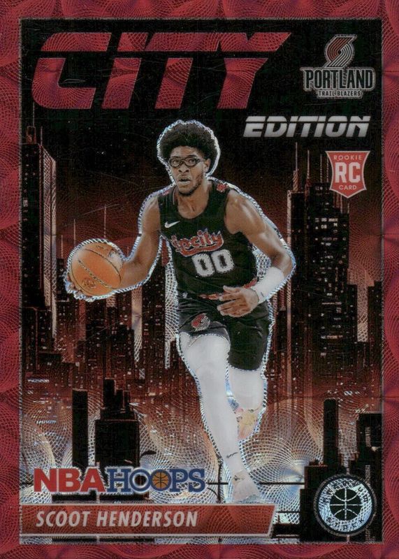 Best Prices Available For Sale of Scoot Henderson 2023 Hoops Premium Stock #5 City Edition - Premium Red /88