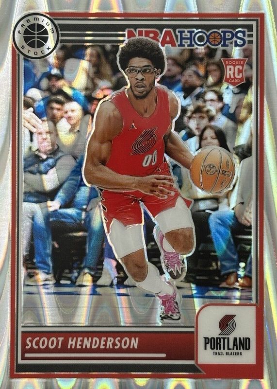 This card is 1 of 175 Scoot Henderson's card variations in the 2023 Hoops Premium Stock set being tracked by Sports Card Investor, including Base, Rising Stars, Disco, Ice, and Multi Wave.