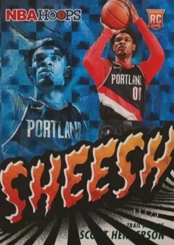 The Scoot Henderson 2023 Hoops #11 Sheesh - Hyper Green /25 Rookie card in Raw condition has not changed in price in the last 30 days and was last sold for $7.75 .