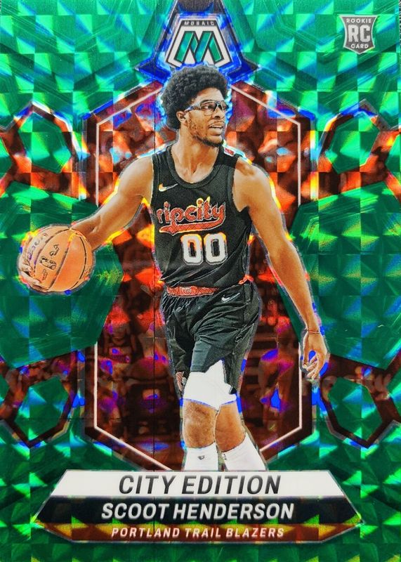 This card is 1 of 203 Scoot Henderson's card variations in the 2023 Mosaic set being tracked by Sports Card Investor, including Base, City Edition, NBA Debut, City Edition - Fast Break, and City Edition - Green.