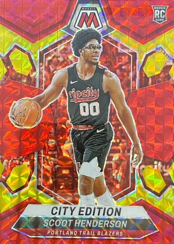2023-24 Mosaic Scoot Henderson RC Choice Fusion Red & Yellow City Edition #35/75