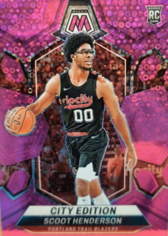 Best Prices Available For Sale of Scoot Henderson 2023 Mosaic #275 City Edition - Fast Break Pink /20