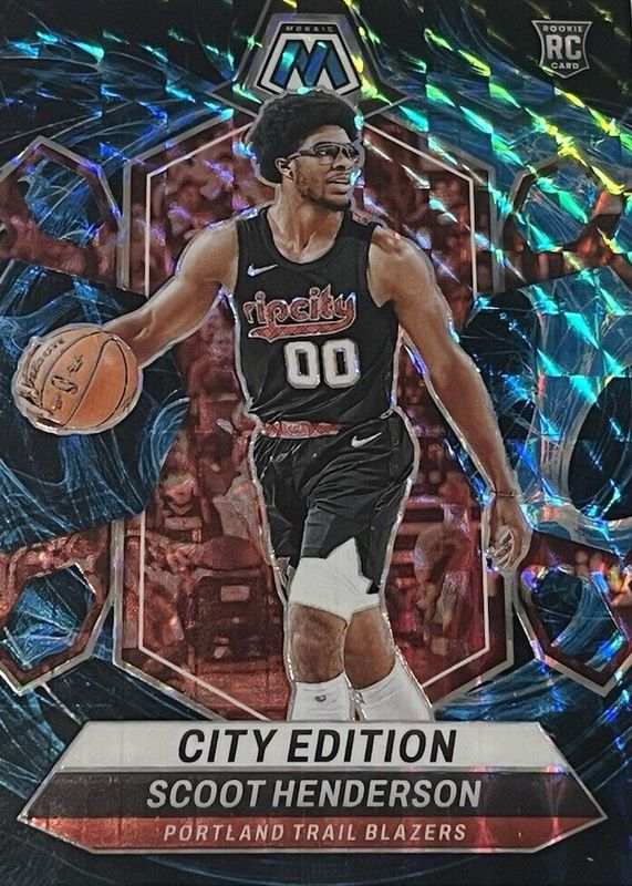 This card is 1 of 203 Scoot Henderson's card variations in the 2023 Mosaic set being tracked by Sports Card Investor, including Base, City Edition, NBA Debut, City Edition - Fast Break, and City Edition - Green.