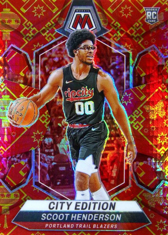The Scoot Henderson 2023 Mosaic #275 City Edition - Lucky Envelopes /8 Rookie card in Raw condition has not changed in price in the last 30 days and was last sold for $89.00 .