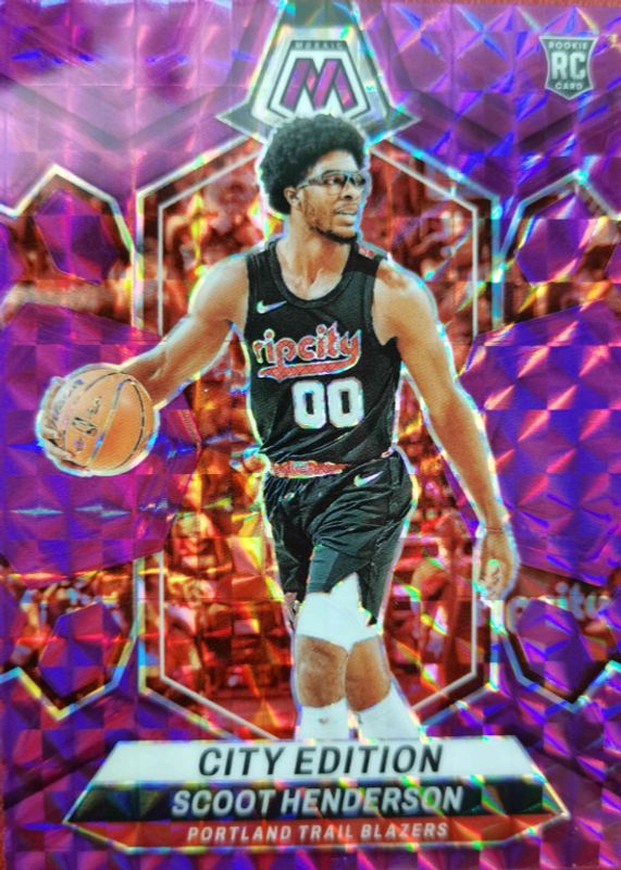 Scoot Henderson 2023-24 Panini Mosaic Rookie City Edition Purple Prizm RC /99