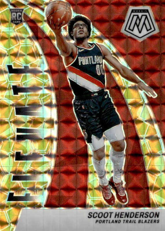 This card is 1 of 203 Scoot Henderson's card variations in the 2023 Mosaic set being tracked by Sports Card Investor, including Base, City Edition, NBA Debut, City Edition - Fast Break, and City Edition - Green.