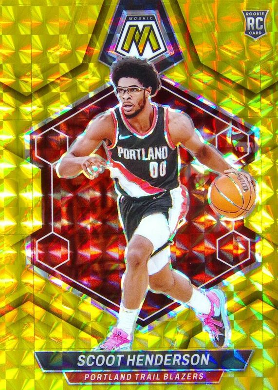 This card is 1 of 203 Scoot Henderson's card variations in the 2023 Mosaic set being tracked by Sports Card Investor, including Base, City Edition, NBA Debut, City Edition - Fast Break, and City Edition - Green.