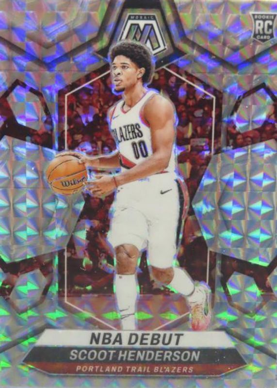 The Scoot Henderson 2023 Mosaic #255 NBA Debut - Mosaic Rookie card in Raw condition has not changed in price in the last 30 days and was last sold for $0.99 .