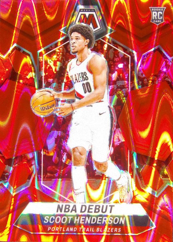 The Scoot Henderson 2023 Mosaic #255 NBA Debut - Red Seismic /299 Rookie card in Raw condition has not changed in price in the last 30 days and was last sold for $3.25 .