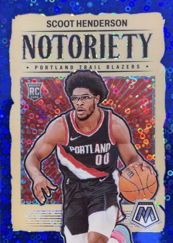 2023 Mosaic Scoot Henderson Notoriety Fast Break Blue /85 Rookie RC SSP Blazers