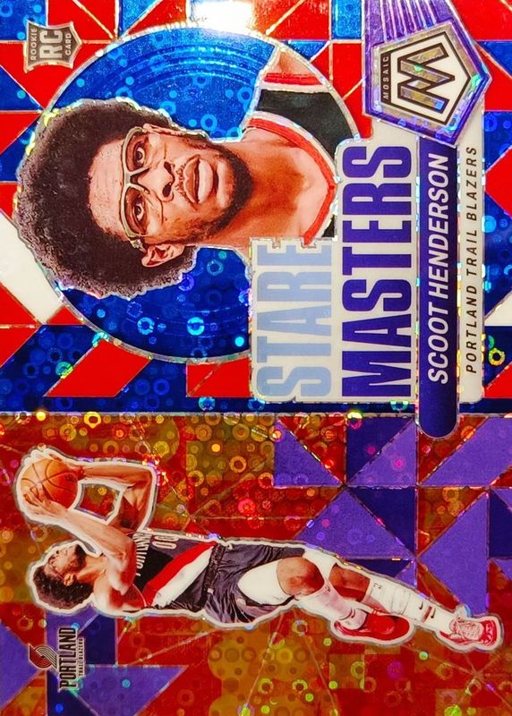 The Scoot Henderson 2023 Mosaic #12 Stare Masters - Fast Break Blue /85 Rookie card in Raw condition has not changed in price in the last 30 days and was last sold for $10.50 .