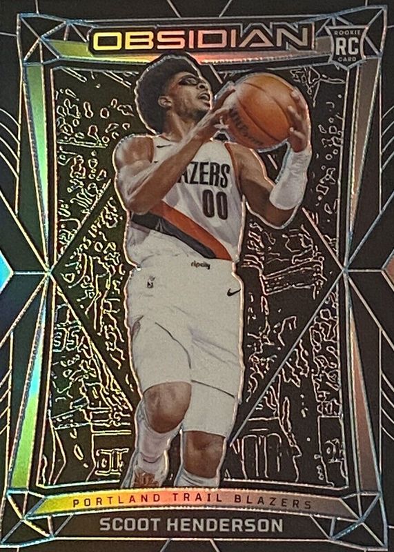 This card is 1 of 86 Scoot Henderson's card variations in the 2023 Obsidian set being tracked by Sports Card Investor, including Base, Electric Etch International, Electric Etch Neon Flood, Electric Etch Pink Pulsar, and Electric Etch Red Flood.