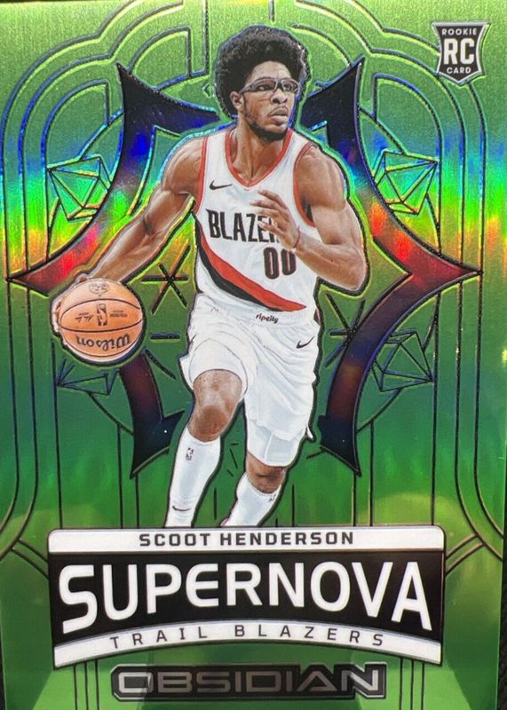 2023-24 Panini Obsidian Scoot Henderson #2 Green Flood RC Rookie Blazers /25