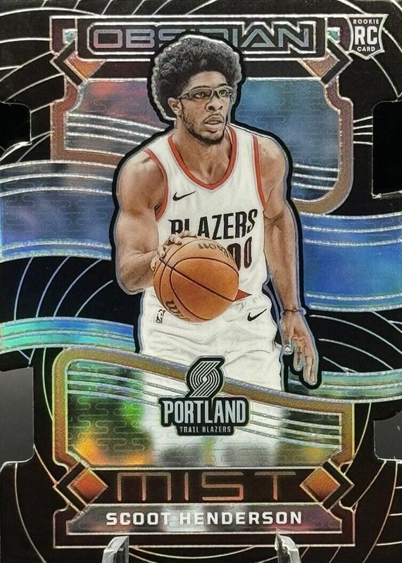 The Scoot Henderson 2023 Obsidian #13 Mist /(SSP) Rookie card in Raw condition has not changed in price in the last 30 days and was last sold for $7.50 .